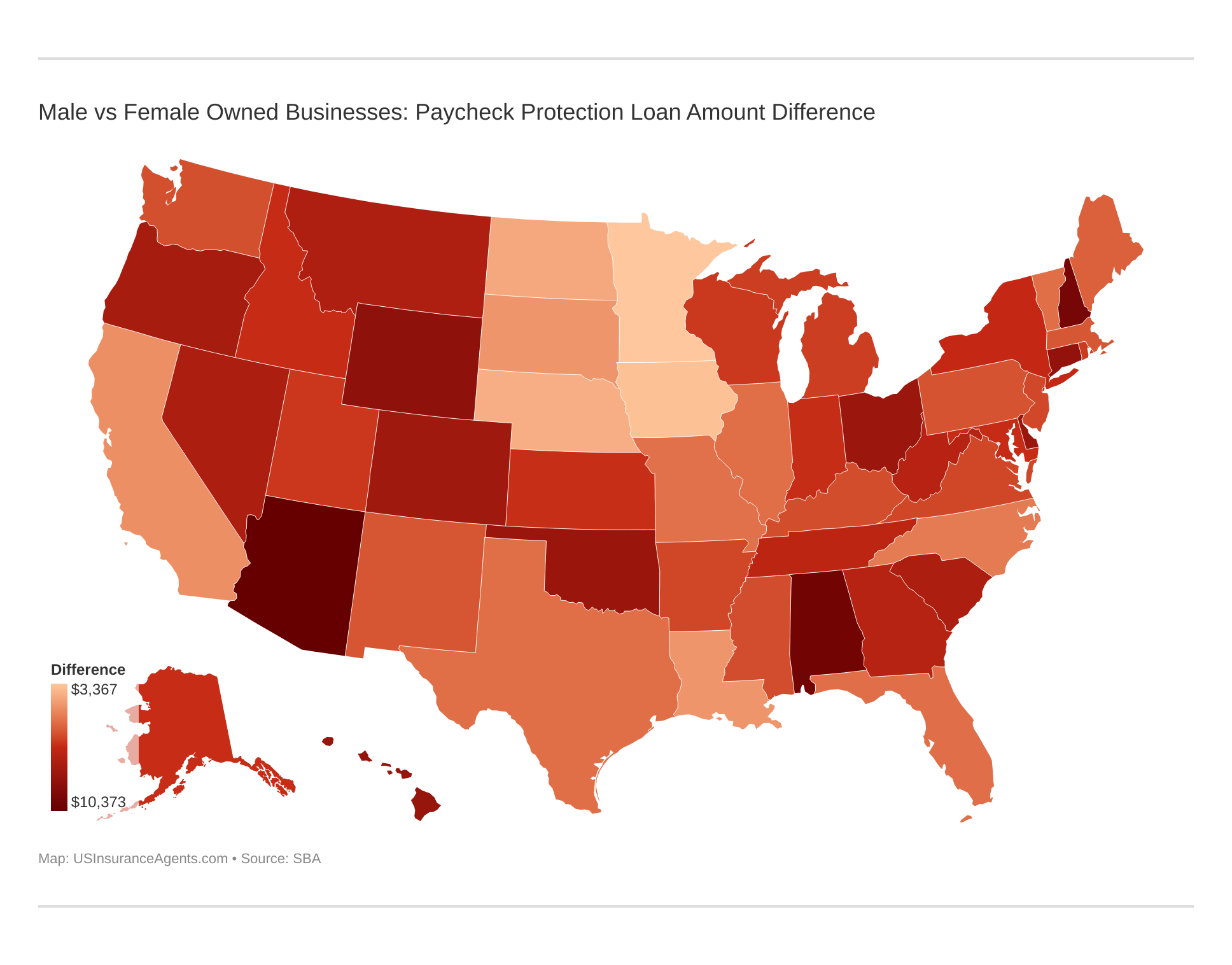It also has a $500 difference in the average loan amount between male and female business owners. The number of jobs saved in a male-owned business versus a female-owned business is lower than the average for all states as well.
